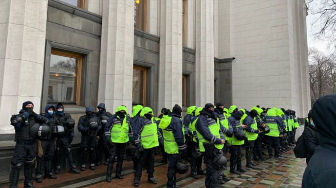 1 грудня під Верховною Радою, де зі щорічним посланням має виступити президент Володимир Зеленський, проходить мітинг, вулиця Грушевського наразі не перекрита, але під парламентом багато правоохоронців.