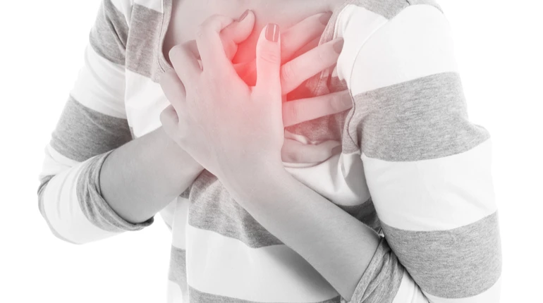- періодичний колючий або ріжучий біль під грудною кліткою;