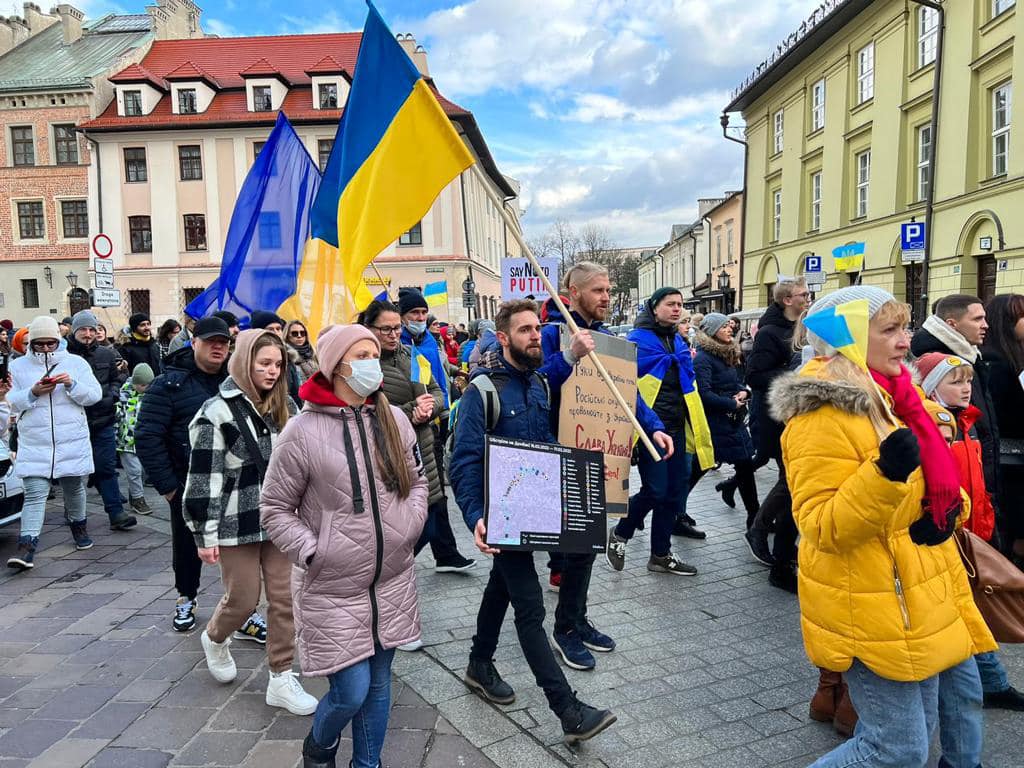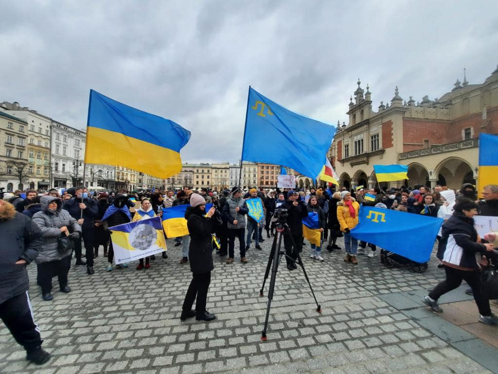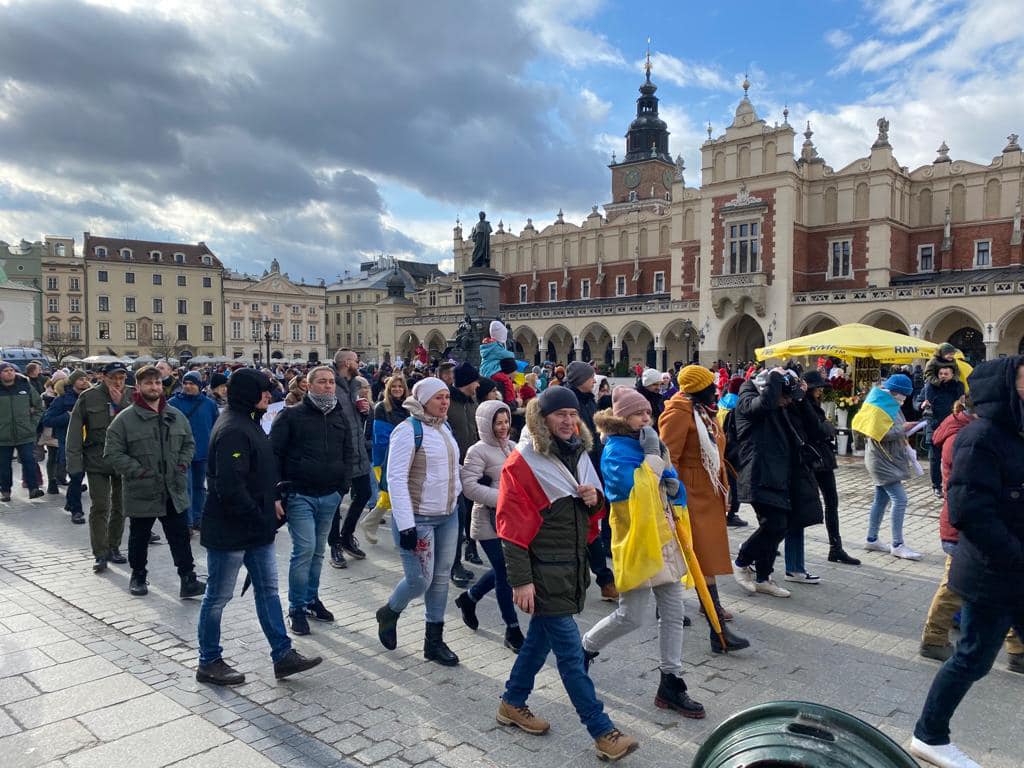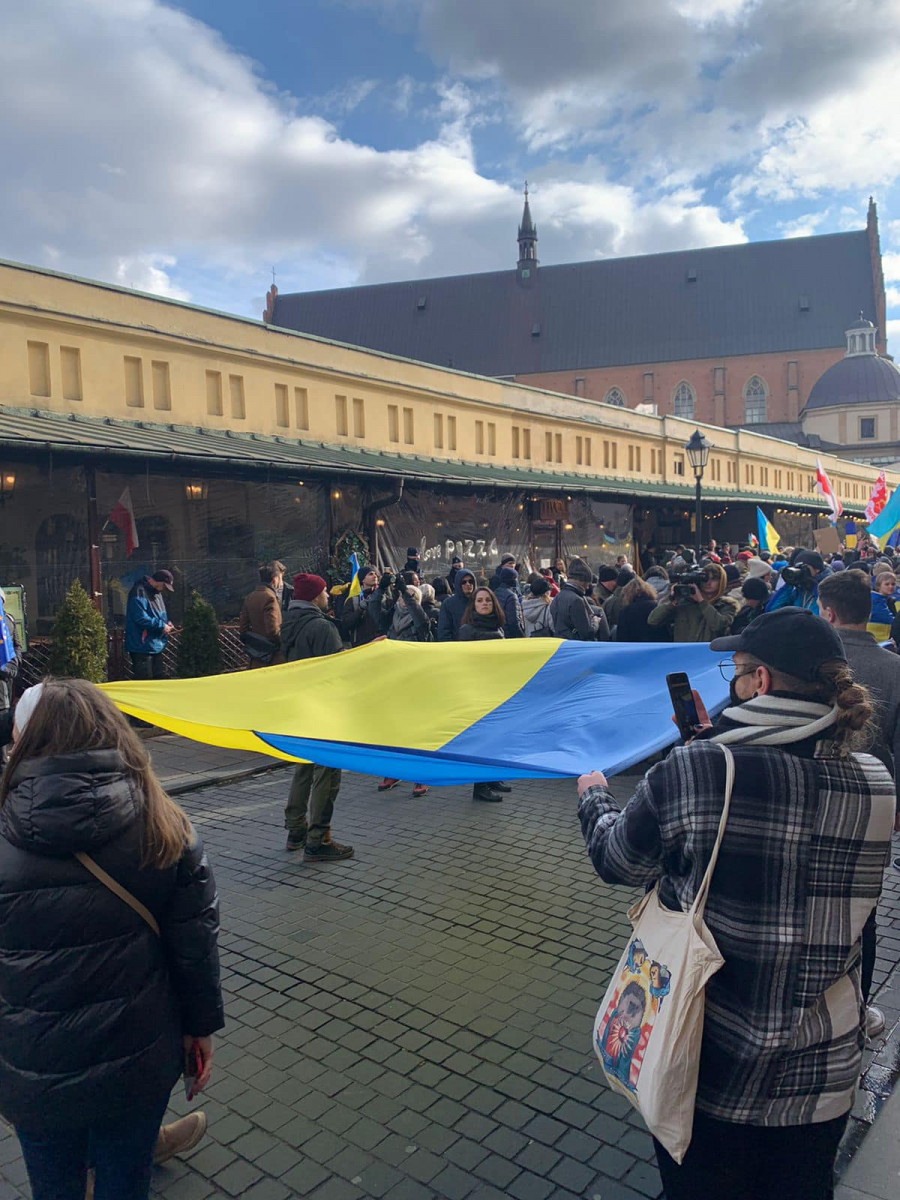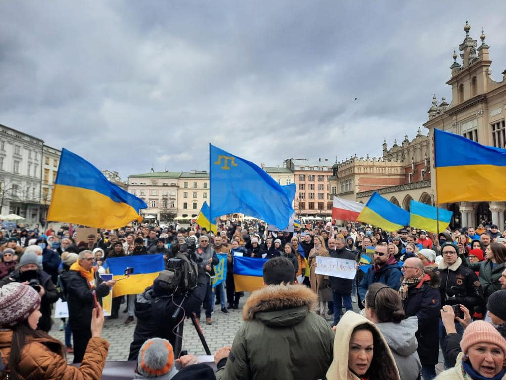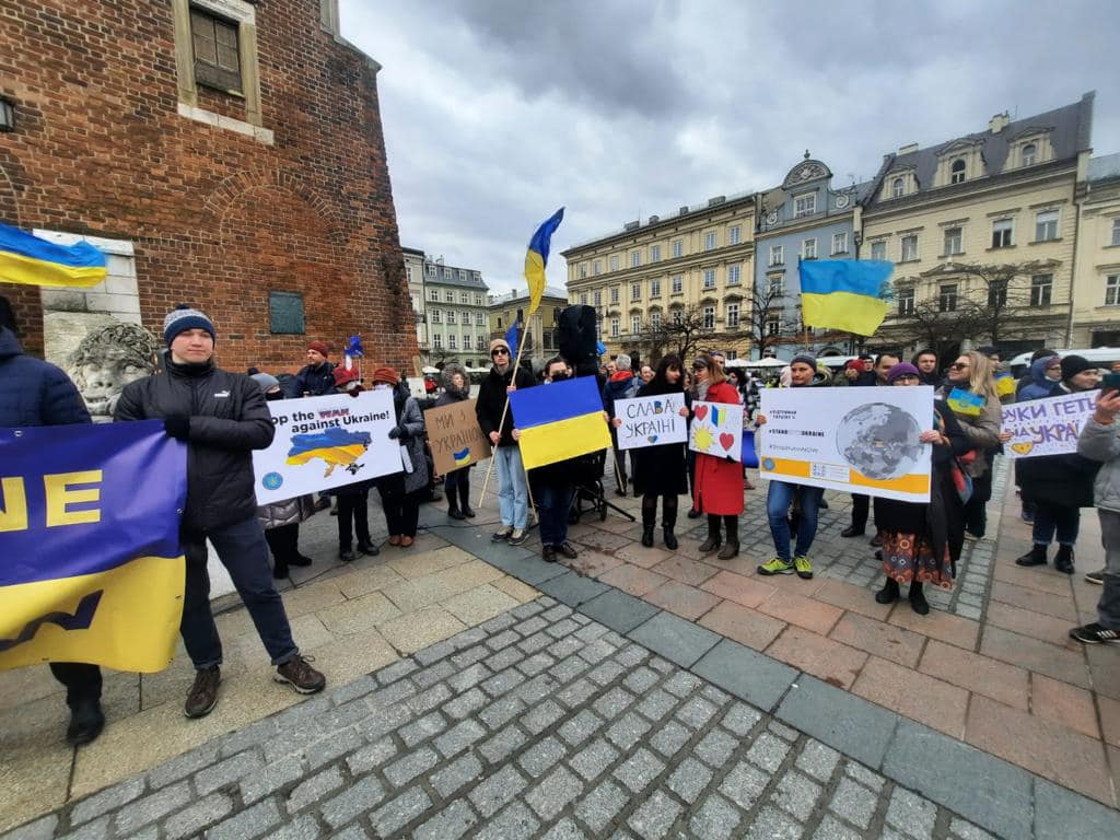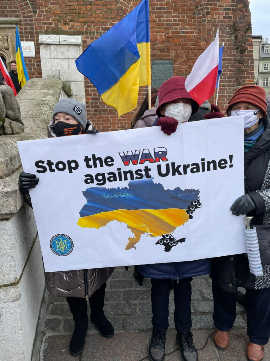 Біля ратуші на Краківській ринковій площі 20 лютого 2022 року за ініціативи Світового Конгресу Українців, Об’єднання Українців Польщі, а також у співпраці Краківського кола ОУП та Генерального консульства України в Кракові, за сприяння Краківської міської влади, українських громадських організацій, проведено чисельну Акцію на підтримку України перед загрозою повномасштабної збройної агресії Росії.