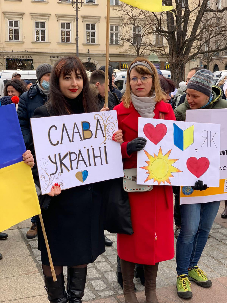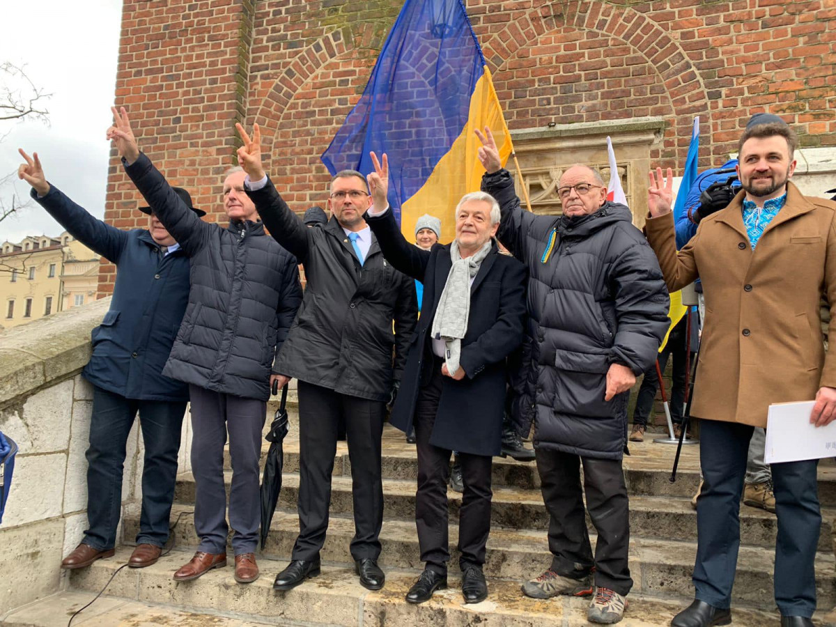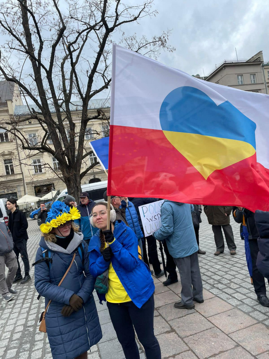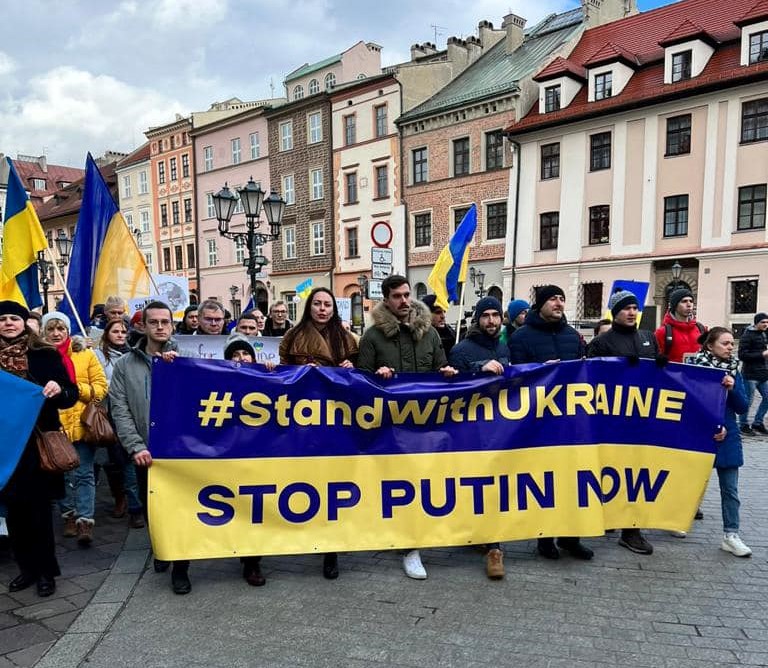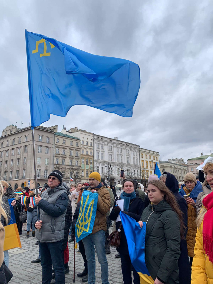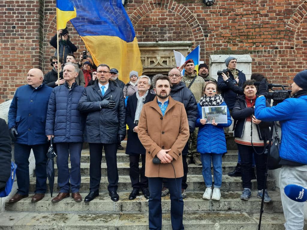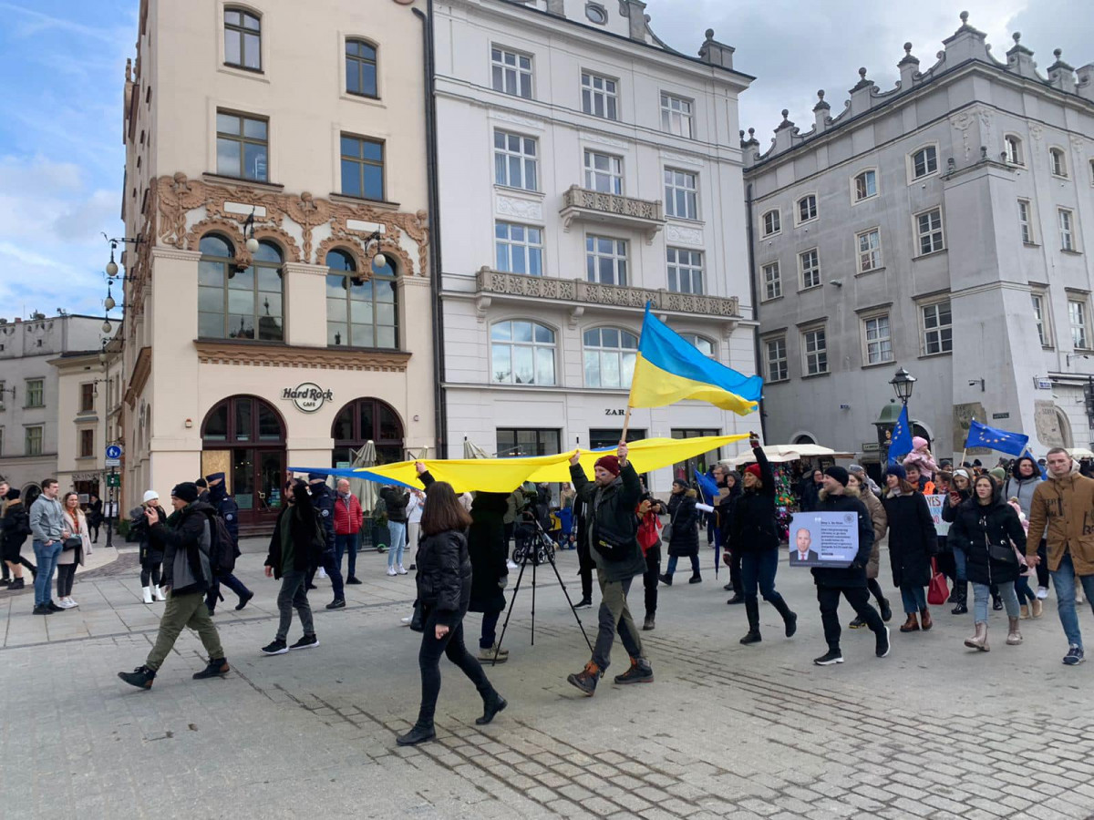 Біля ратуші на Краківській ринковій площі 20 лютого 2022 року за ініціативи Світового Конгресу Українців, Об’єднання Українців Польщі, а також у співпраці Краківського кола ОУП та Генерального консульства України в Кракові, за сприяння Краківської міської влади, українських громадських організацій, проведено чисельну Акцію на підтримку України перед загрозою повномасштабної збройної агресії Росії.
