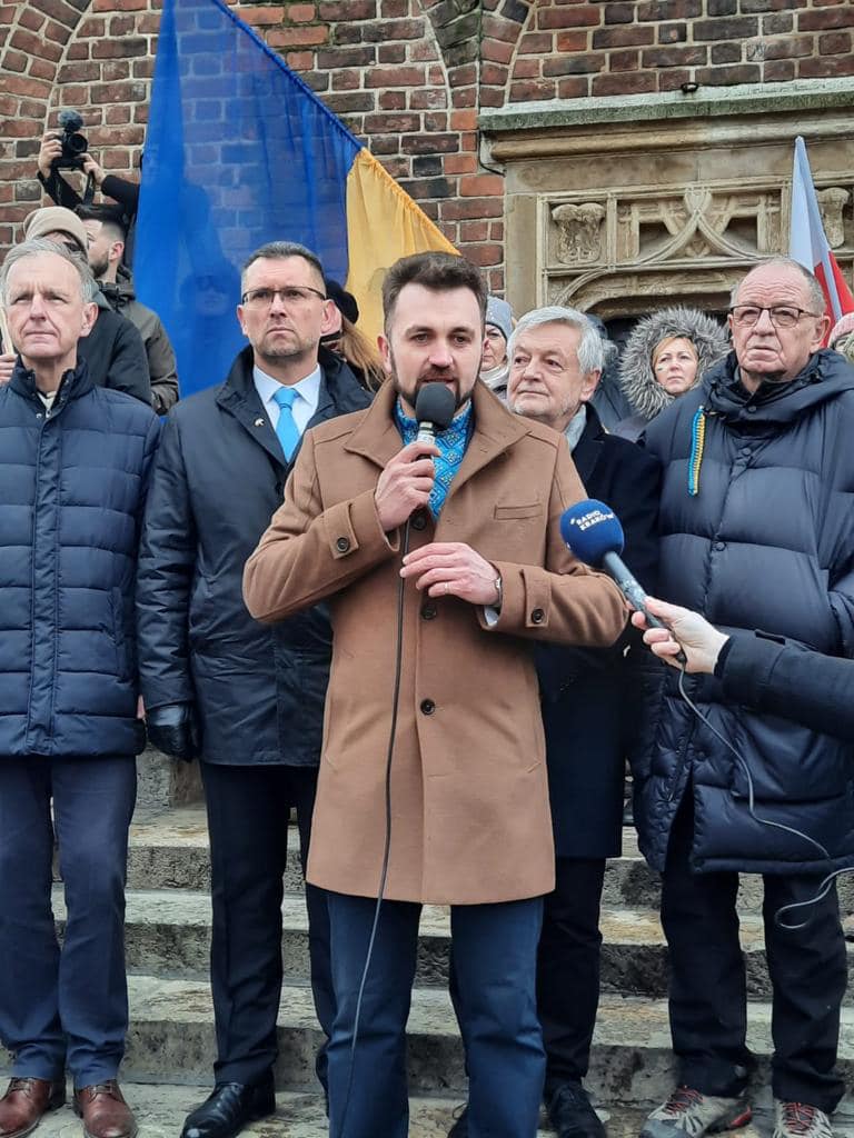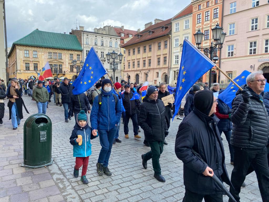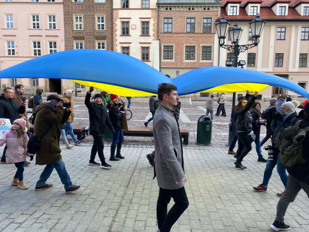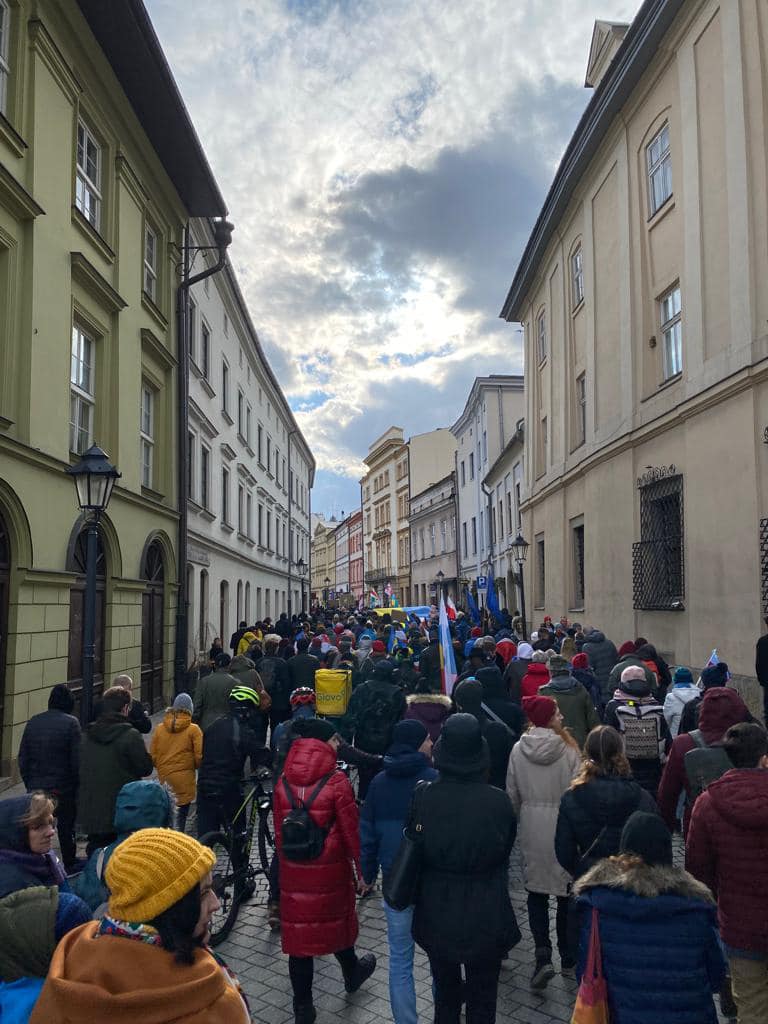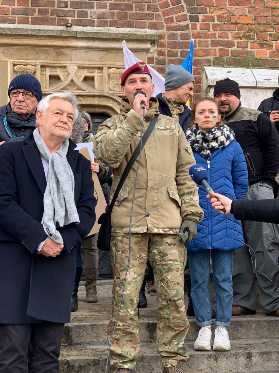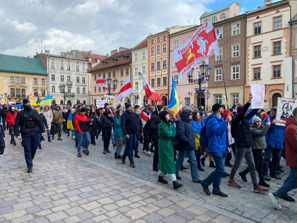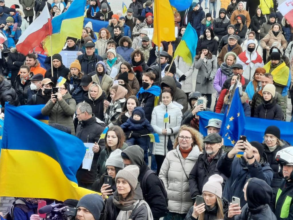 Біля ратуші на Краківській ринковій площі 20 лютого 2022 року за ініціативи Світового Конгресу Українців, Об’єднання Українців Польщі, а також у співпраці Краківського кола ОУП та Генерального консульства України в Кракові, за сприяння Краківської міської влади, українських громадських організацій, проведено чисельну Акцію на підтримку України перед загрозою повномасштабної збройної агресії Росії.
