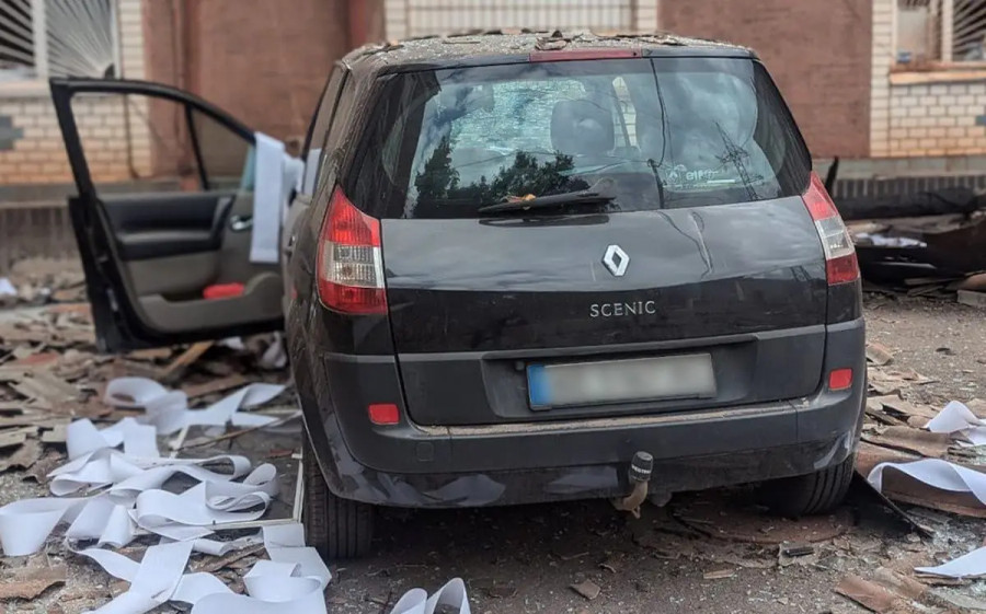 Після влучання безпілотника також спалахнула пожежа в одній з будівель. Загалом пошкоджено щонайменше п’ять автомобілів.