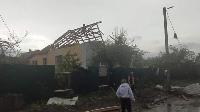 У Кропивницькому потужний вітер позривав дахи з будинків. Також через негоду у деяких з будівель частково зруйнувались стіни.