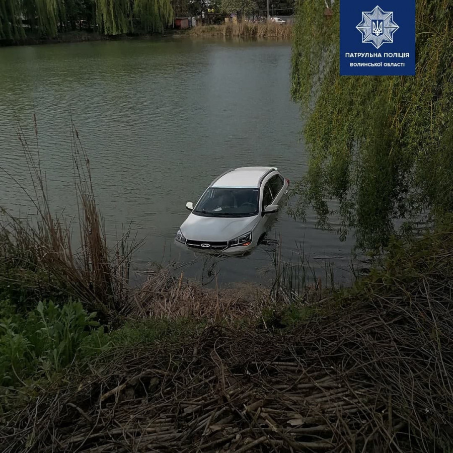 Патрульні, які приїхали на місце події, виявили вказаний автомобіль, який знаходився у ставку. Поспілкувавшись із заявницею та оглянувши камери відеоспостереження, інспектори встановили, що автомобіль покотився заднім ходом із власної необережності заявниці.