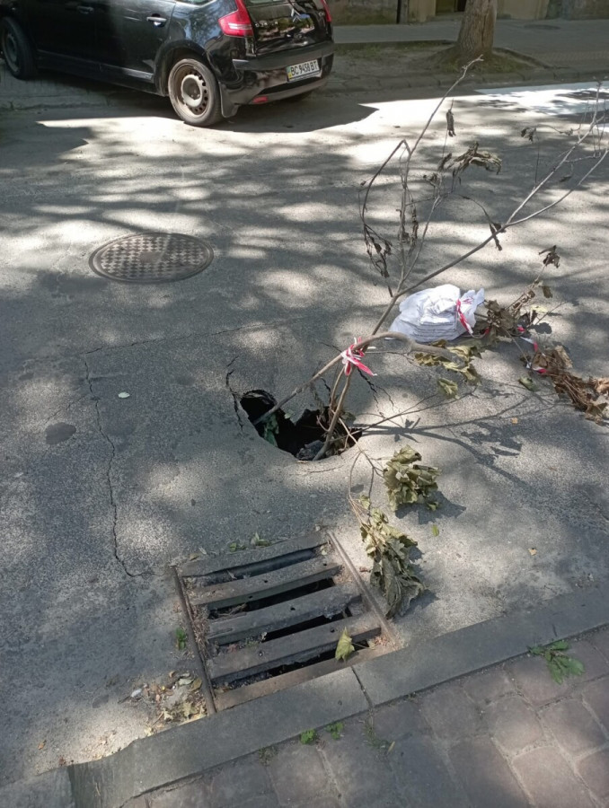 «На вул. Кубійовича, поруч головного корпусу академії мистецтв, утворюється добряча яма. Небезпека для вантажівок і легкових авто, мабуть теж», – йдеться у повідомленні.