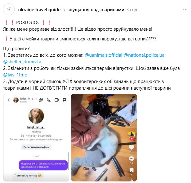 Після розголосу до ситуації долучилася зоозахисна організація UAnimals. Юристки організації подали заяву до поліції та вимагають: