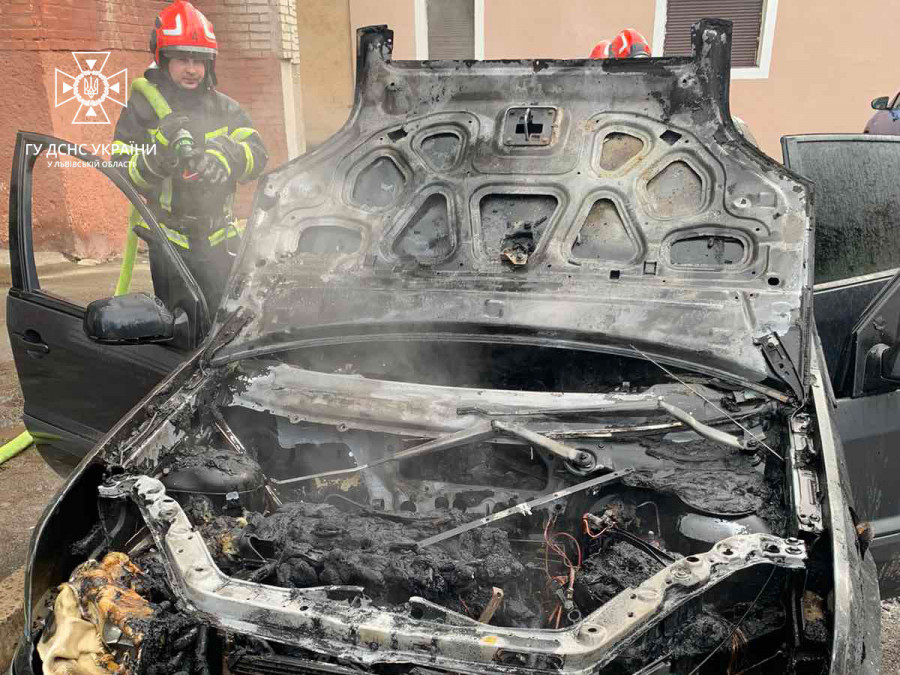Вогонь знищив моторний відсік автомобіля, салон та кузов автомобіля, два передні крила, капот, дві передні фари.
