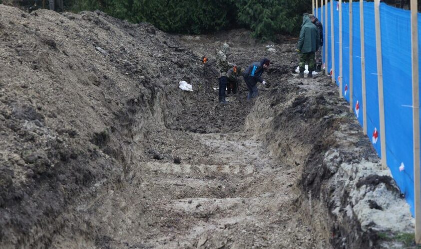 Він додав, що усі роботи тут проводять під наглядом фахівців. Екскаватор використовують для зняття верхнього шару грунту. Далі пошуківці працюють лопатами, шпателями, пензликами.