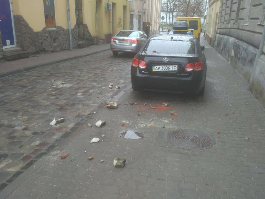 Сьогодні, 25 березня, у Львові на вулиці Вугільній на автомобіль обвалився фасад будинку.