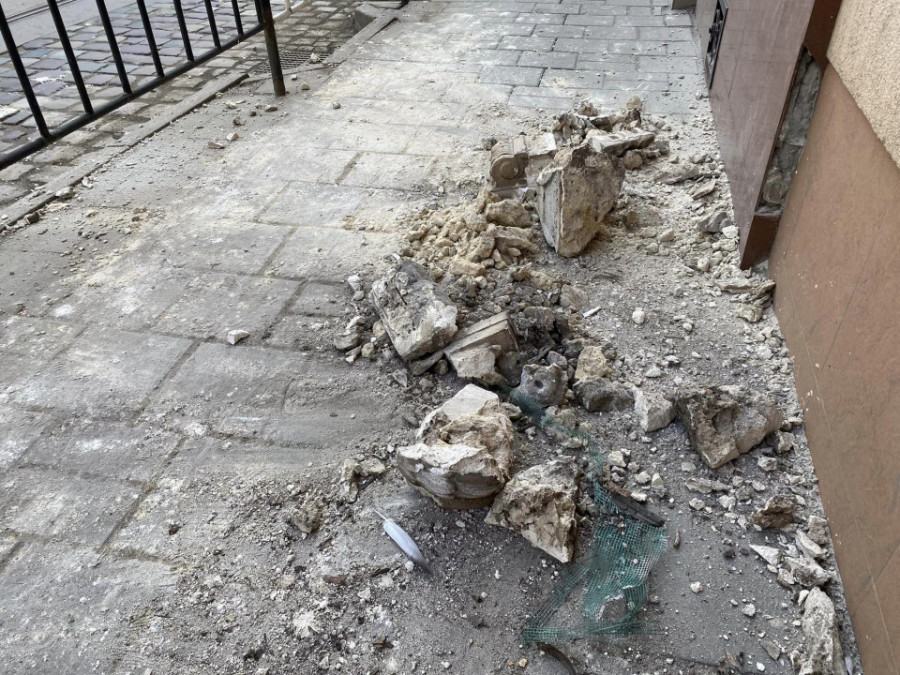 Він звернувся до міськради з проханням провести ремонт аварійного фасаду. "Впала величезна брила ліпнини на тротуар", – написав учасник групи.