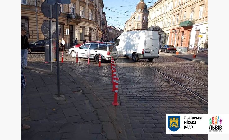 приватних авто на пл. І. Франка встановлюють обмежуючі стовпці. За інформацією начальника управління транспорту ЛМР Ореста Олеськіва, такі ж стовпці буде встановлено між зустрічними трамвайними коліями на вулиці І. Франка і на пл. Осмомисла.