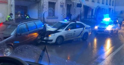 Вранці у неділю, 28 листопада, патрульні на службовому авто Skoda Rapid вчинили аварію на вул. Шота Руставелі. Поліцейські розбили і своє авто, і ще чотири припарковані на вулиці машини.
