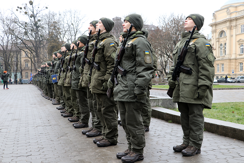 11 січня мйже сто нацгвардійців присягнуло на вірність українському народові. Полія відбулась у Львові перед університетом імені Івана Франка. Присягу склало молоде поповнення, яке призвано на військову службу восени 2019 року.