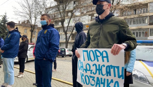 Під час заходу націоналісти передали працівникам установи звернення з вимогами щодо боротьби проти проросійських сил.