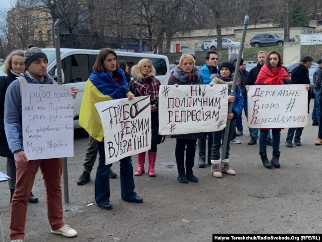 Кілька десятків представників різних громадських організацій у четвер протестували біля територіального управління Державного бюро розслідувань у Львові з вимогою припинити, як вони вважають, «політичні репресії» проти блогерки і волонтерки Марусі Звіробій.