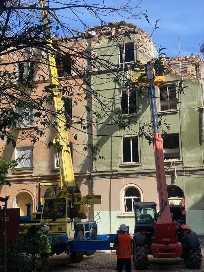 Наразі місто розпочало невідкладні протиаварійні роботи. Насамперед мова про демонтаж елементів будівель, понівечених внаслідок ракетного удару. Ситуація ускладнюється тим, що у чотирьох будинках повністю знищене перекриття, відповідно пересуватися в ньому вкрай небезпечно. «Тому було вирішено використати спеціальну будівельну техніку - підйомники, на яких будуть підніматися працівники та згори поступово здійснювати демонтаж. Це довше, але надійніше. Оскільки стан цих будинків гостроаварійний і загрожує повним обвалом», - додав заступник міського голови.