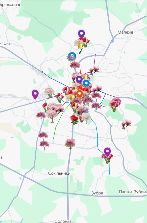 Карта стала зручним інструментом для тих, хто планує прогулянки містом і хоче потрапити на пік цвітіння.