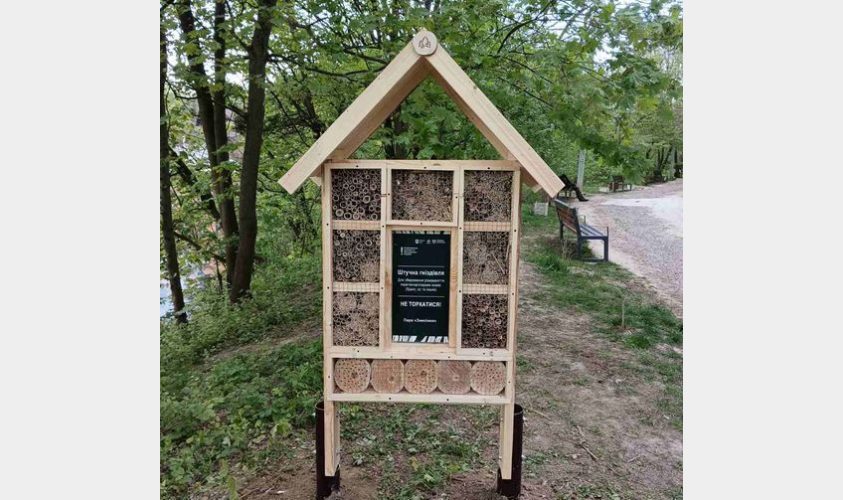 «Бджоли – це запилювачі, а оси їдять шкідників. Тому така гніздівля є корисною для збереження біорізноманіття та вивчення фауни. Восени науковці будуть розбирати будиночок та досліджувати, хто там живе», - розповів директор регіонального ландшафтного парку «Знесіння» Тарас Микітчак.