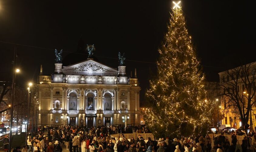 Сьогодні, 5 грудня, напередодні Дня святого Миколая, біля Оперного театру засвітили міську ялинку. Розпочали подію із хвилини пам’яті, аби вшанувати всіх тих, хто віддав своє життя, захищаючи Україну. Перша леді Львова Катерина Кіт-Садова подякувала родині Підвірних, які цьогоріч віддали місту свою ялинку, і символічно подарувала від Львівської громади сім'ї саджанець нової ялинки.