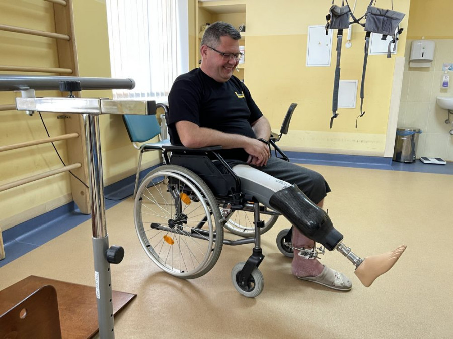 48-річний Олег Горділей втратив ногу на другий день повномасштабного вторгнення. Це було 25 лютого у Херсоні під час обстрілу Антонівського мосту. Чоловік зупинився біля блокпосту українських військових, коли туди прилетіло дві російські ракети. Автівка згоріла вщент. Йому самому перебило ноги. Праву – врятувати не вдалося. За ліву лікарі досі боряться. Уже восьмий місяць вона нерухома, а чоловік через це не міг навіть стати на милиці. Побут був нестерпним.