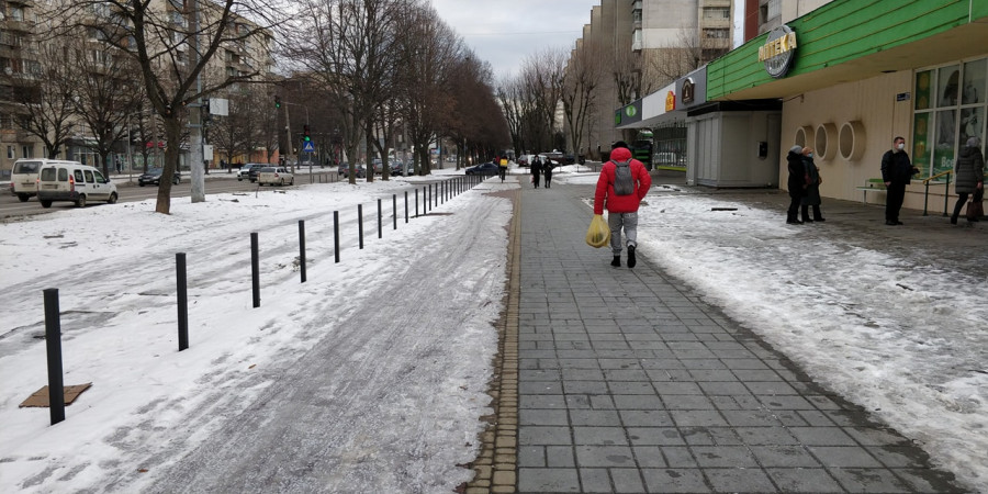 Orest Kalynyak: "Наочна ілюстрація різниці між "на папері" та насправді. Велодоріжка наче і є, але користуватись нею нереально. Прохання до комунальних служб нормально її розчистити та чистити і надалі разом з пішохідним хідником. Вул. Володимира Великого".