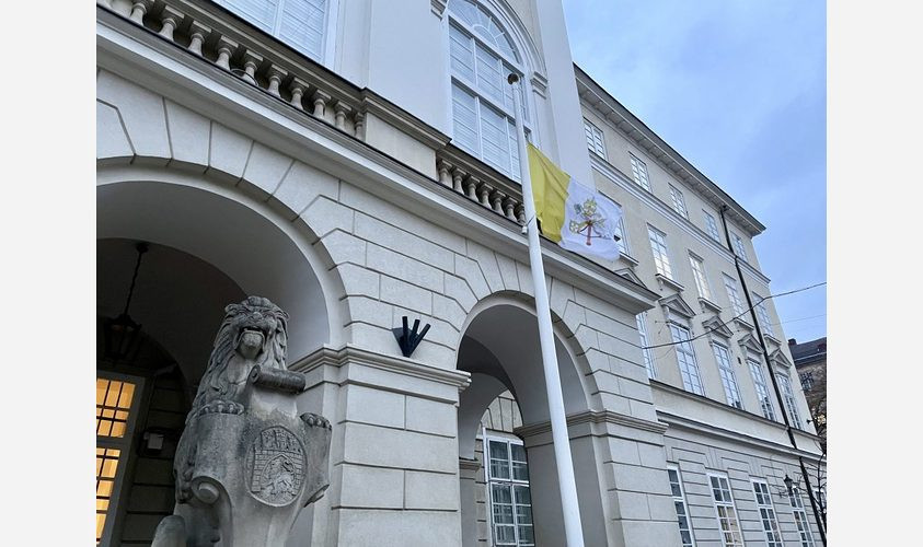 На флагштоку перед Львівською міською радою приспустили прапор Ватикану як символ співчуття у день поховання Папи Римського Бенедикта XVI