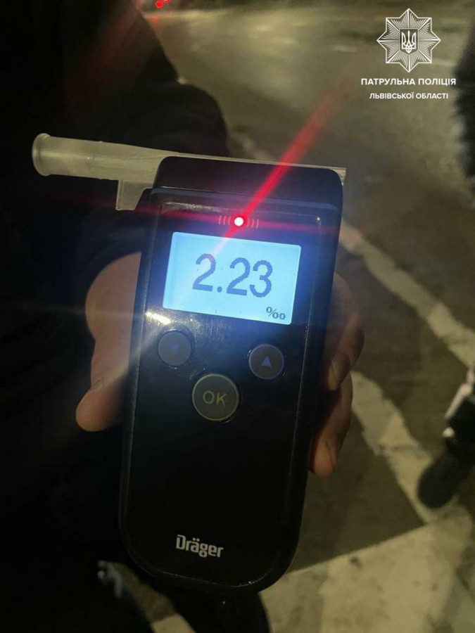 "Під час спілкування із 48-річним винуватцем ДТП, охоронці порядку виявили у нього ознаки алкосп‘яніння. Чоловік погодився пройти переверку за допомогою приладу Drager. Результат освідування — 2,23 проміле. Максимально допустима норма — 0,2 проміле", – повідомляють у патрульній поліції Львівської області.