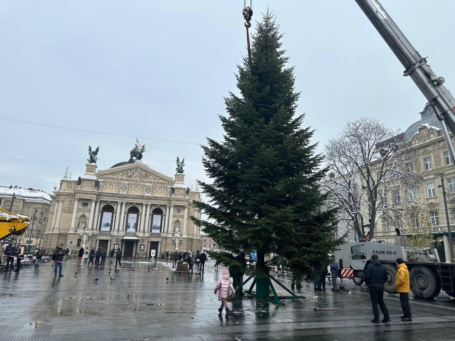 Сьогодні, 1 грудня, на площі перед Оперним театром Львова почали встановлювати головну новорічну ялинку міста.За темою