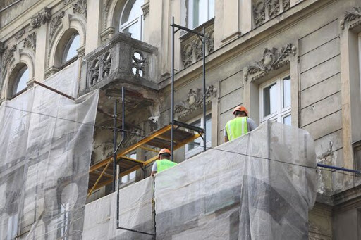 У будинку на пл. Галицькій, 7 відбувається реставрація еркеру та балкону на замовлення управління охорони історичного середовища ЛМР. Роботи виконує ТЗДВ «Львів-реставрація».