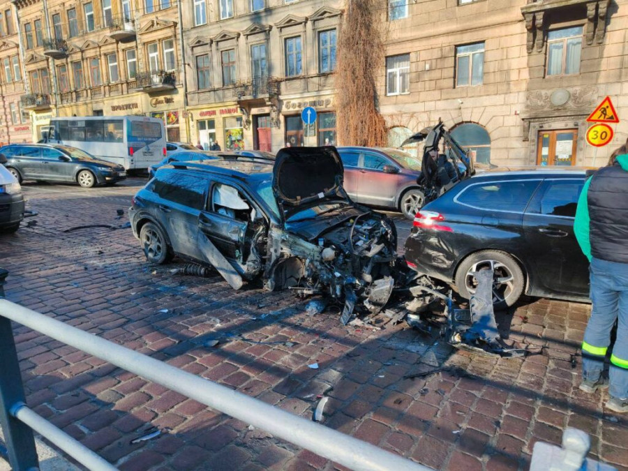 Як повідомляє WestNews з посиланням на Управління безпеки Львівської міської ради, аварію зафіксували камери Центру безпеки. На відео видно, як один із автомобілів на високій швидкості врізається у затор машин.