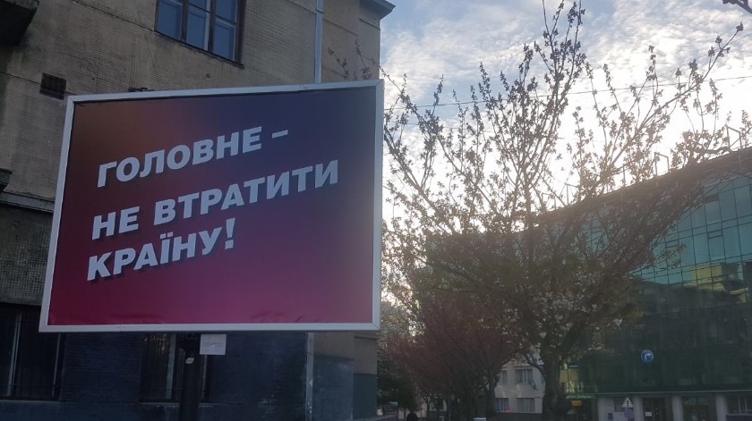 Так, на вулицях Львова, повідомив рух ЧЕСНО, залишилася реклама з гаслом “Головне – не втратити країну!”, яка нагадує агітацію Порошенка і є його передвиборчим слоганом.