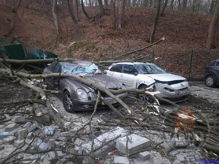Сильні пориви вітру зламали дерево у парку «Залізна вода». Гілки впали на два автомобілі, що були припарковані на вул. Стуса, 14. Гілки зламали паркан та пошкодили обидва автомобілі. Про подію близько 9 години ранку у понеділок, 7 грудня, у Telegram-каналі Варти-1 повідомив депутат Львівської міськради Ігор Зінкевич.