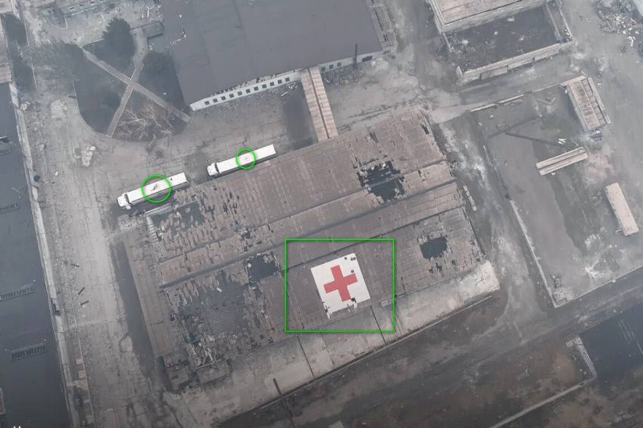На даху будівлі було розміщено червоний хрест, який помітно з повітря. Такими хрестами відзначаються місця, де можуть бути поранені, цивільні або гуманітарні вантажі.