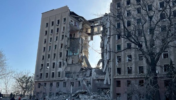 Як повідомлялося, 29 березня близько 08:45 у м. Миколаїв внаслідок обстрілу та влучання в дев’ятиповерхову адміністративну будівлю, де знаходиться облдержадміністрація та обласна рада, сталося руйнування центральної секції будівлі з 9 по 1 поверхи, без послідуючого горіння.