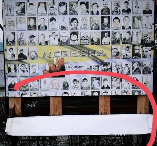 "Цієї ночі, 25 лютого, у селищі Немирів вандали пошкодили патріотичний банер, на якому розміщено фотографії Героїв, які загинули під час Революції Гідності на Майдані в Києві.
