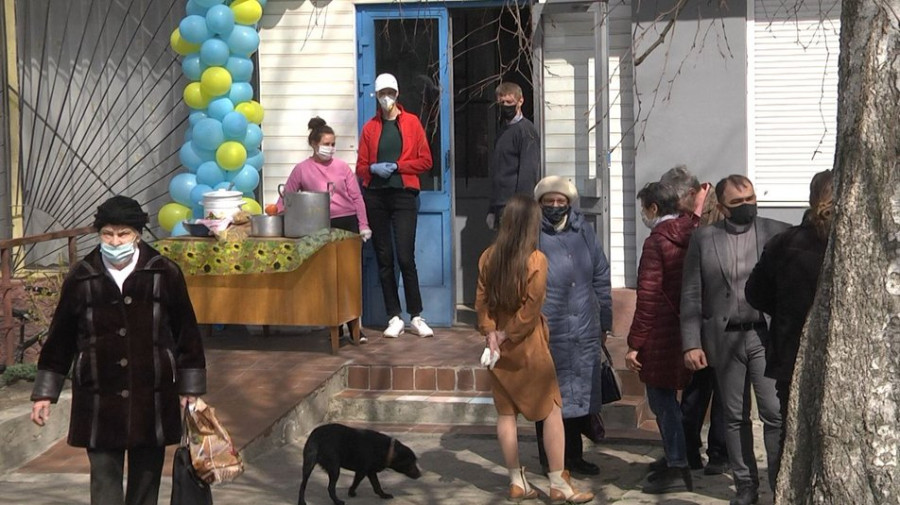 Їжу нужденним почали роздавати 12 квітня о 12:00. "Український борщ з перцем болгарським, помідорами, морквою, капустою, все самі виростили. Також є бурячок із цибулькою, салат, сосиски і вермішель з маслом", – перелічує меню волонтерка Ірина Угринович.