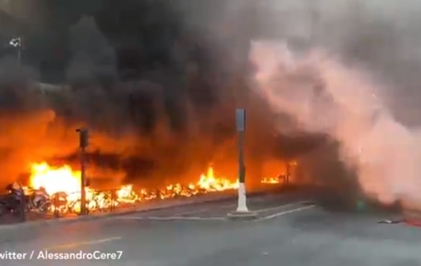Агентство Франс пресс повідомляє, що невідомі підпалили сміттєві баки і моторолери, припарковані біля вокзалу.