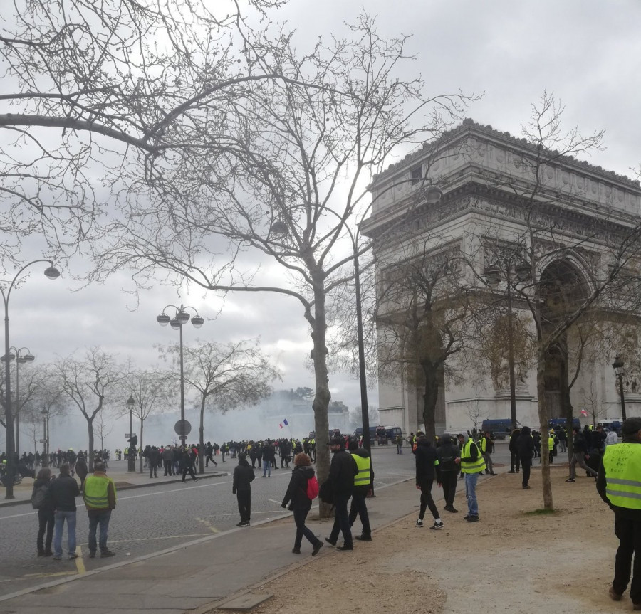 "Демонстранти кидали димові шашки та інші об'єкти в офіцерів уздовж Єлисейських полів і почали бити по вікнах поліцейського фургона", - йдеться в повідомленні.