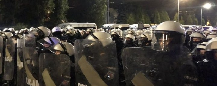 За дві години учасники акції протесту вирушили до офісу правлячої партії "Право і справедливість", але по дорозі наштовхнулися на поліцейський кордон. Правоохоронці повідомили, що акція є незаконною через те, що Варшава входить до "червоної карантинної зони". В разі відмови розійтися поліцейські повідомили про готовність застосувати силу.