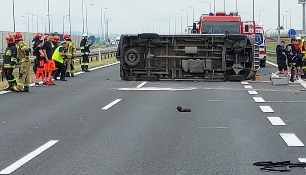 "Біля Тарнува в Польщі сталася ДТП. Постраждали четверо українців, у т.ч. неповнолітній. Їх госпіталізовано, надається необхідна медична допомога. Решта пасажирів без травм", - написав Ніколенко.