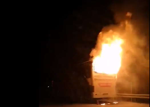 Відомо, що загоряння сталося у задній частині автобуса.