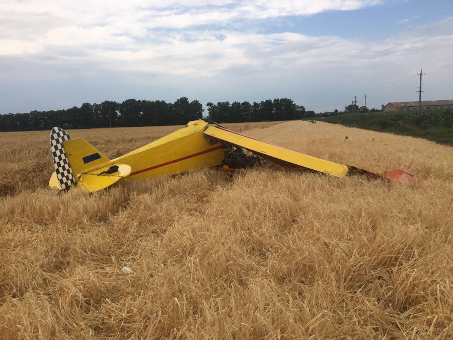 З'ясовано, що у с. Плехів Оржицького району літак впав на поле пшениці, внаслідок чого загинула 1 особа та 1 особу травмовано.
