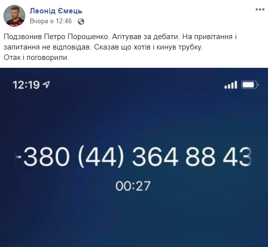 Зокрема, 19 квітня, "дзвінок від Порошенка" одержав один з аналітиків руху, який не залишав партії свого номера телефону.