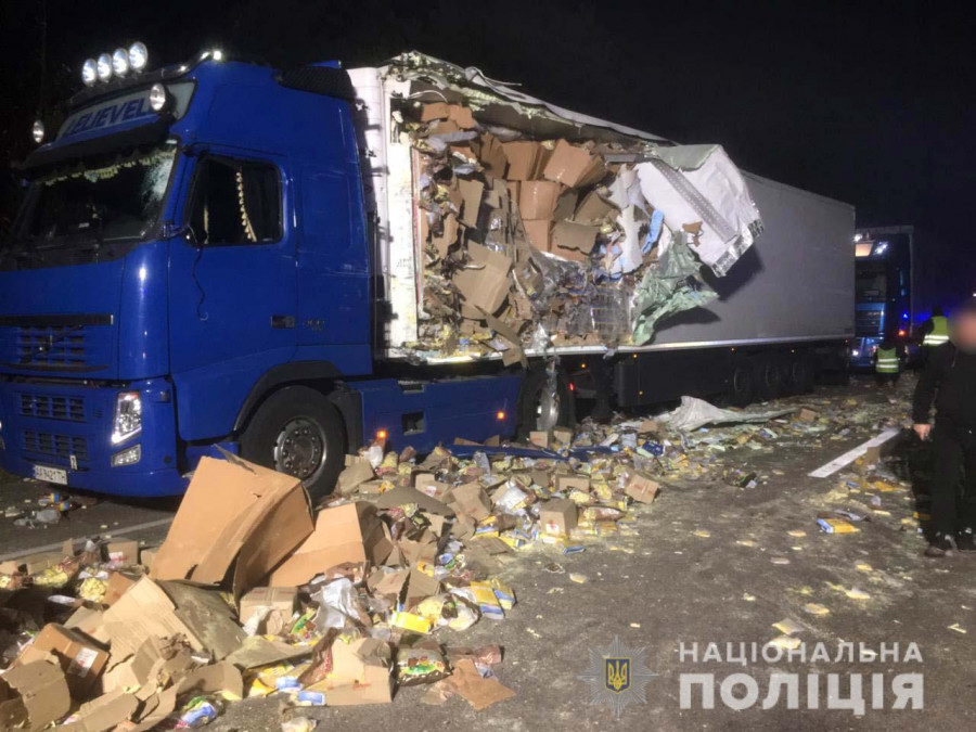 Поліцейські встановили, що водій автомобіля «Daf» з напівпричепом, 50-річний житель селища Краковець Львівської області, рухаючись у напрямку столиці, з невідомих поки причин, виїхав на смугу зустрічну руху, де допустив зіткнення з напівпричепом автомобіля «Volvo» під керуванням 58-річного жителя Київської області.