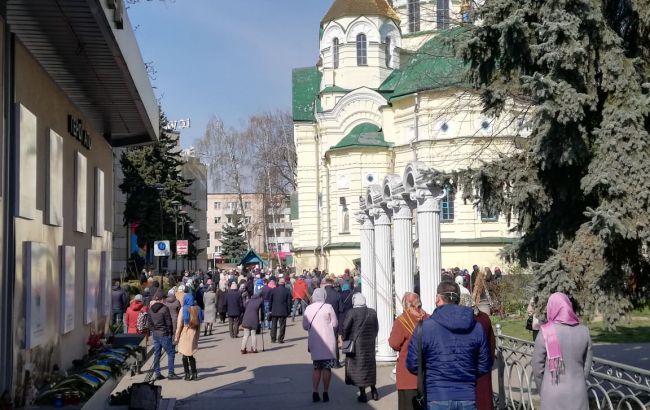 У неділю, 12 квітня, у Рівному біля Свято-Воскресенського собору УПЦ Московського патріархату проводиться богослужіння з присутністю людей, попри карантин в Україні.
