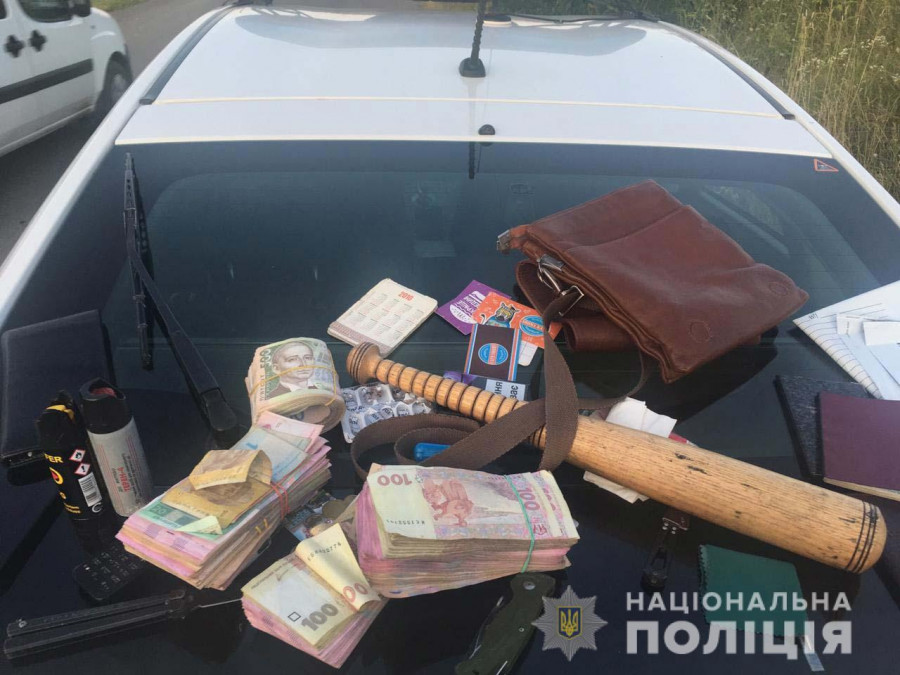 Під час проведеної поверхневої перевірки патрульні виявили у транспортному засобі кишенькові ножі, газові балончики та грошові кошти у сумі майже 224 тисячі гривень.