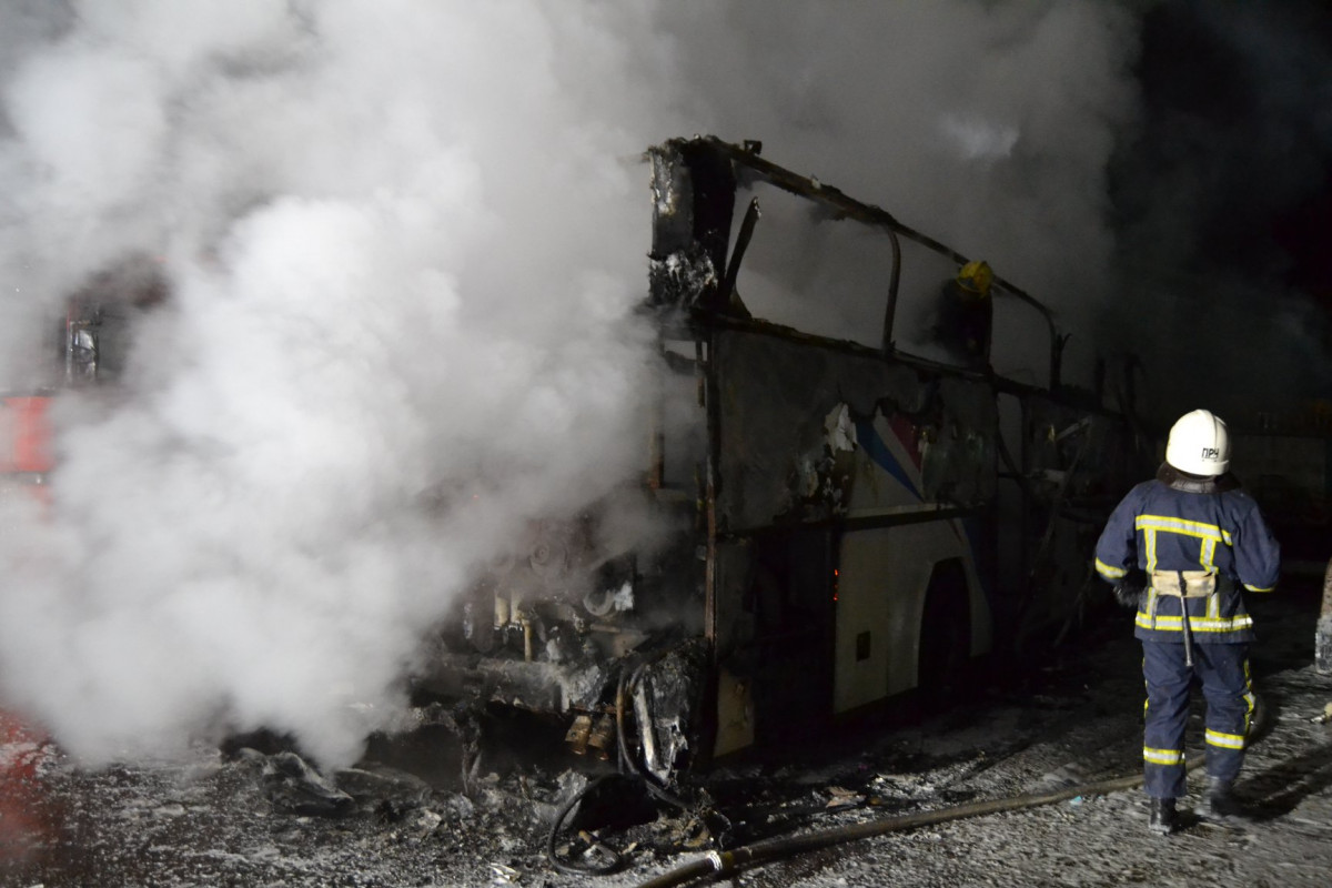 За вказаною адресою прибули рятувалиник, які встановили, що вогнем повністю охоплено двоповерховий пасажирський автобус «NEOPLAN». Існувала загроза перекидання полум’я на поруч розташовані автомобілі. Бійці ДСНС відразу подали на гасіння загорання вогнегасячі засоби. Вже о 01:13 пожежу було локалізовано, а о 01:55 повністю ліквідовано. Внаслідок пожежі вогнем повністю знищено автобус. Жертв та постраждалих немає.