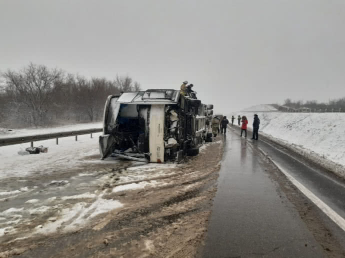 На засніженій трасі у Воронезькій області РФ перекинувся автобус з українцями, постраждали 13 осіб.