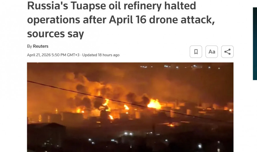 У Росії одразу два нафтопереробні заводи, що належать компанії Роснефть, припинили роботу після ударів безпілотників. Йдеться про Туапсинський нафтопереробний завод та Новокуйбишевський нафтопереробний завод.