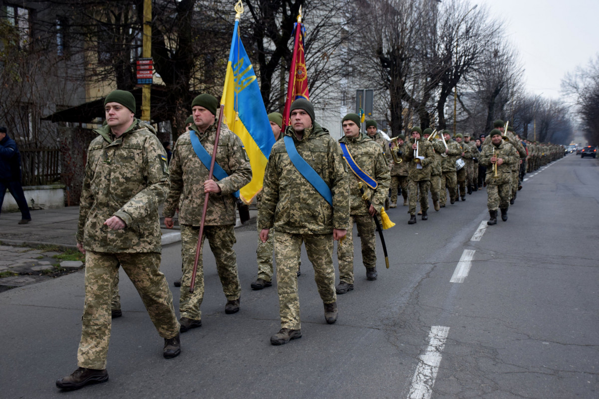 Захисники пройшли похідним маршем центральними вулицями міста, від місця постійної дислокації бригади до Майдану Незалежності міста Стрий.